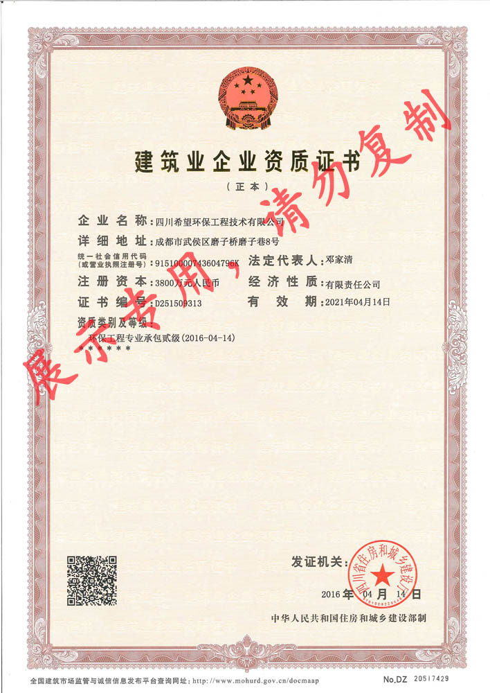 環(huán)保工程專業(yè)承包貳級